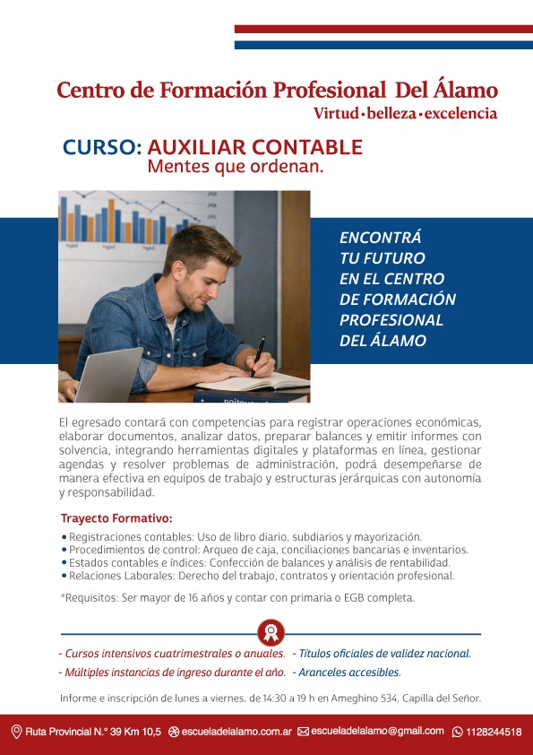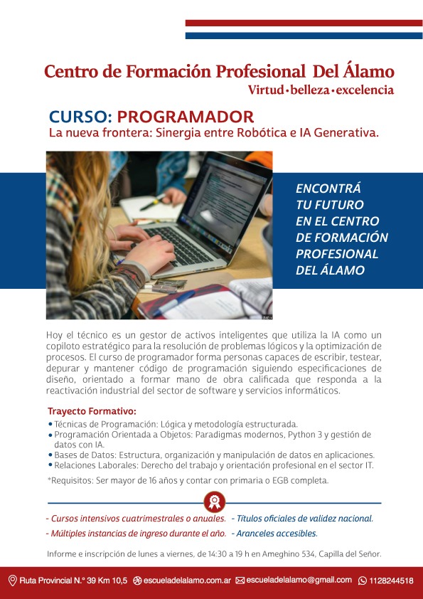 El Centro de Formación Profesional Del Álamo ofrece propuestas de corta y mediana duración destinadas a jóvenes y adultos que buscan adquirir competencias concretas, actualizar conocimientos o profesionalizar oficios vinculados al desarrollo productivo de la región.